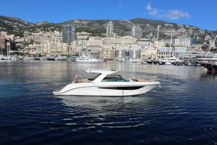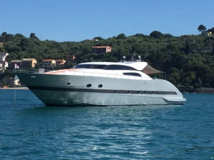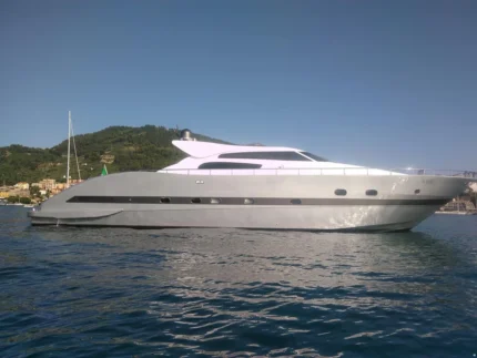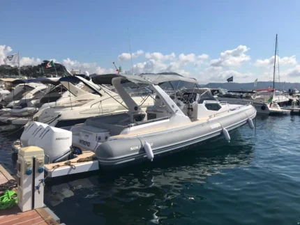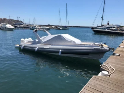 Il design esterno, impreziosito dall’elegante colore grigio, esalta le linee sportive e raffinate tipiche del brand. A bordo possono accomodarsi comodamente fino a 8 persone, mentre gli interni includono 1 cabina, 1 bagno completo con doccia, offrendo il giusto equilibrio tra lusso e funzionalità.