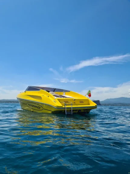 Con una lunghezza di 11,28 metri e una larghezza di 3,50 metri, offre spazi ben distribuiti e una navigazione stabile. Il pescaggio di 0,45 metri consente accesso agevole anche in acque meno profonde, mentre il dislocamento di 6.500 kg assicura solidità e sicurezza in ogni condizione.
