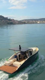 Modello Lancia 9m su progetto e costruzione CNT (Sessa Aurunca CE), personalizzabile 90/100 da parte del cliente, configurazione consigliata con cabina con letto a V piu’ letto bambino, bagno. modello tuttoponte con due sedute laterali e zona cucina completa e area pilotaggio con quadro elettrico esteso. Lift poppiero fino a pelo acqua per fare bagno e supporto per gommone, Coperta e pozzetto tutto ponte rivestito in teak (qualita’ ed estensione a scelta cliente), modello proposto con un motore ma disponibile con la coppia sempre in linea assi.