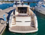 - REFIT INTERNI 2019. – SERVIZIO MOTORI OGNI 200 ORE. – YACHTCONTROLLER PER ELICHE E MOTORI. – ELICHE DI PRUA E DI POPPA ELETTRICHE. – POZZETTO IN TEAK. – TEAK PONTE RIFATTO 2018. – ANTIVEGETATIVA ESEGUITA OGNI ANNO.* * OTTIME CONDIZIONI! * * Cabina armatoriale a tutto baglio a centro barca su ponte inferiore, con letto queen size,TV 55″,2 spaziosi armadi e bagno con doccia,lavandino e wc elettrico; Cabina Vip a prua con TV 24″,armadio, bagno con doccia,lavandino e wc elettrico; Cabina ospiti a dritta con letti in piano e 3°letto pullman; Cabina singola a sinistra. Bagno ospiti in comune con accesso dal corridoio, doccia lavandino e wc elettrico.Cabina equipaggio a poppa con entrata dal pozzetto con letto a castello e bagno privato con doccia.Salone open space su ponte principale con 2 divani a L, tavolo da pranzo, cantinetta vini, Tv 32″. Cucina completa di elettrodomestici Siemens, con piano cottura a 4 fuochi, Nr 3 frigoriferi, freezer, forno e microonde. Autoclave, Boiler, Dissalatore Idromar 120lt/h, Serbatoio acque nere 100lt, Acque grigie 300lt, Aria condizionata con 4 unita’ reverse cycle, Pompe sentina automatica/elettrica.Tv in tutte le cabine, Impianto stereo con sistema surround, Altoparlanti in salone e su ponte, Lettore cd/dvd, Lavastoviglie, Macchina caffe’, Icemaker, Lavatrice.Hard top con tettuccio apribile sopra la timoneria, Area prendisole su ponte di prua con divanetti e tavolini, Pozzetto con sedute, tavolini e wet bar con frigo e lavandino, Doccia pozzetto, Sprayhood, Bimini top, Salpancora elettrico con contacatena, Bitte in acciaio, Piattaforma bagno idraulica in teak (nuovo 2018) con scaletta bagno pieghevole, Passerella idraulica Besenzoni telescopica, Garage per tender idraulico a tutto baglio, Tender Zodiac+fuoribordo Honda 125hp, Luci subacquee a led. Zattera. Pc di bordo, Strumenti del vento, Gps-Plotter con display Raymarine (E120+E80) in timoneria integrato con Radar Raymarine, Sistema wifi, 4xVhf (1 fisso in timoria+1 fisso in pozzetto+2 portatili), Autopilota Raymarine ST6002, Echo Raymarine, Bussola magnetica, Alternatori, Luci di navigazione, Tromba, Faro orientabile.Nr 2 Generatori Kohler da 20Kw (1290 ore), Nr 3 Caricabatterie Mastervolt 100A+Inverter 3.5Kw, Nr 21 Batterie (5xmotori+4xeliche prua e poppa+12xservizi).