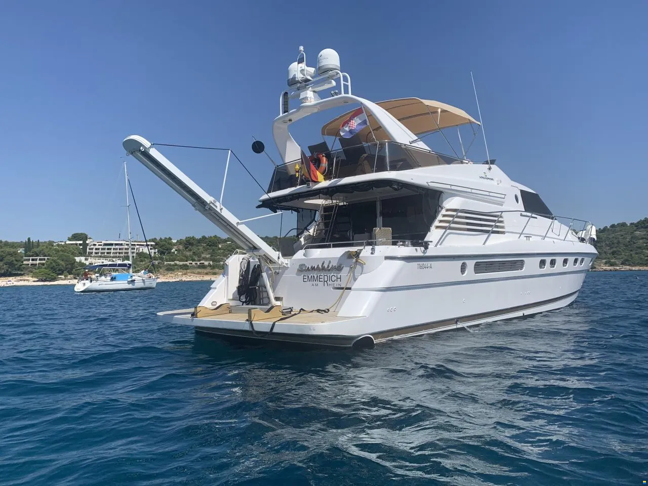 Si tratta di un Fairline Squadron 62 con una piattaforma da bagno allungata di 3 piedi, per una lunghezza totale di 19,80 metri. L’equipaggiamento è quello elencato, ma vorremmo anche menzionare o aggiungere alcune cose. Molte cose sono state rinnovate, modernizzate e ottimizzate negli ultimi anni. Alcuni esempi: 3x MicroCommand Controls, nuovo frigorifero/congelatore in cucina con inverter da 2000 watt incluso FB. FB, piano cottura a induzione con 4 piastre, rivestimento del soffitto del salone e della zona pranzo rinnovato, generatore Fischer Panda da 25 kW, elica di prua rinforzata, nuovo GPS plotter da 12″ sul flybridge, flybridge ampliato con 2 comodi lettini, sedie, sgabelli e lettini del pozzetto rivestiti di recente, una nuova copertura per il gommone (brigantino di 4 metri con Tohatsu 30 hp), aria condizionata della cabina armatoriale rinnovata e altre unità di condizionamento (4x) completamente revisionate, manutenzione completa di MAN, generatore, dissalatore e impianto idraulico per il timone, nuovi regolatori di carica Victron 2x, nuova pompa di alimentazione del dissalatore, centralina elettrica con inverter da 3,6 kW e pacco batterie al litio ferro fosfato da circa 400 Ah, computer di bordo per il monitoraggio delle batterie, serbatoio FW e temperatura/barometro, tutta l’illuminazione convertita a LED, antivegetativa e anodi rinnovati 2025, batterie rinnovate 2024/2025, ecc., ecc;