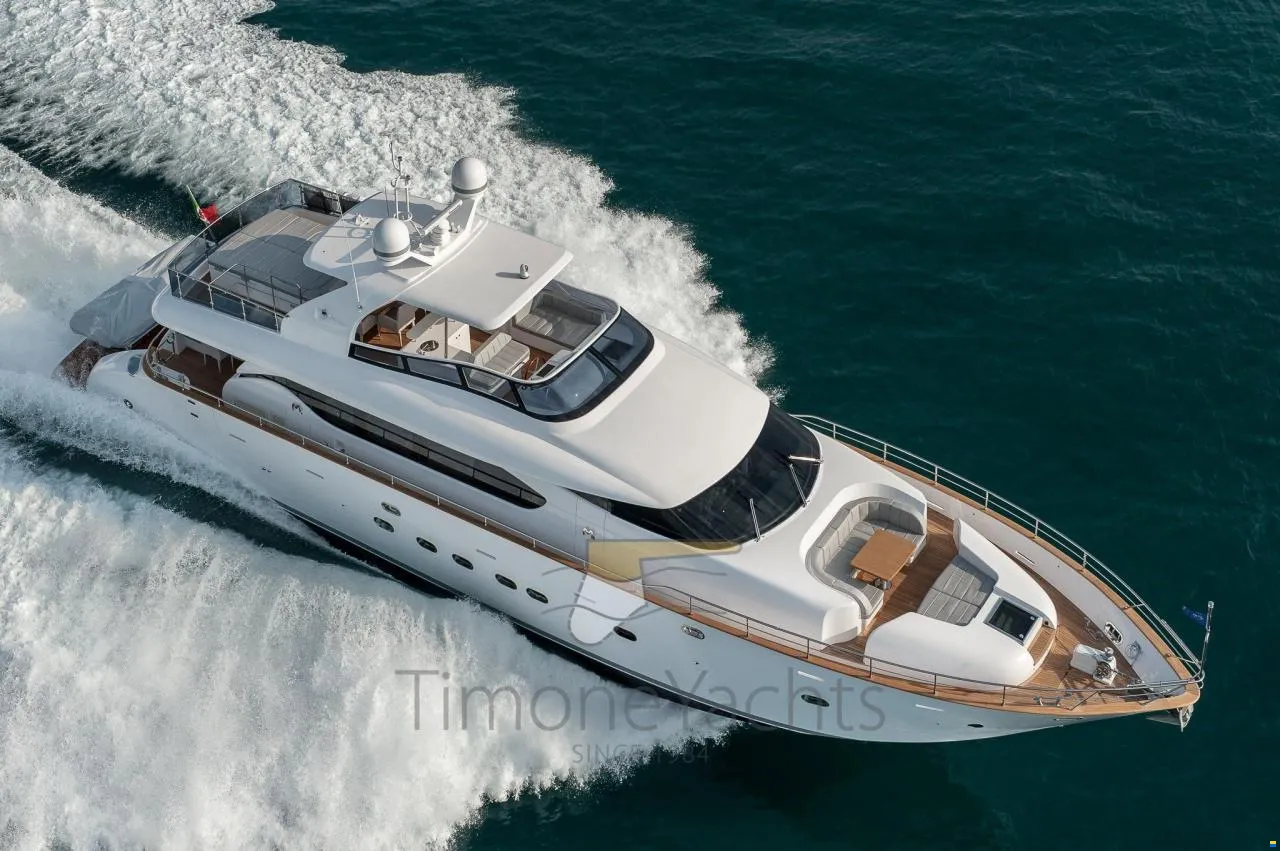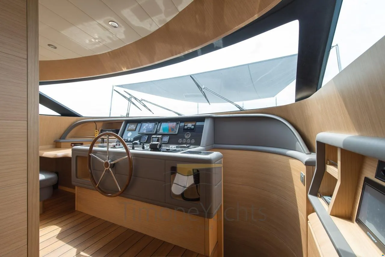 CMC electric fins (zero speed + navigation), watermaker Idromar, bow + stern thristers, carbon fiber Hard Top on fly, domotic touch screen at the dash + redundant manual back up in ER + dedicated App, tender Williams 385, up/down platform astern, Icemaker with drinking water dedicated supply, jacuzzi tub on fly, cockpit enclosure, fresh water plug in bow anchor room, sliding beds in midship twins each one with pullman bed, underwater lights, flybridge tv system, teak on fly, sink + fridge cabinet on fly, nr 2 grill BBQ separate cabinet on fly, tv plug predisposition on front dinette, portholes alarms, nr.3 camera system, centralized hoover, yacht controller, safe in master cabin + front crew cabin + Captain cabin astern, Audio-Video entertainment system: Samsung TV + BOSE audio.