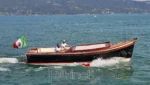 Sullo scafo in VTR derivato dalla lancia clinker inglese, tipica del nostro cantiere, sono installati quei dettagli in mogano o teak, che conferiscono al modello quella sensazione di ?opera artigianale? che solo il legno può trasmettere.