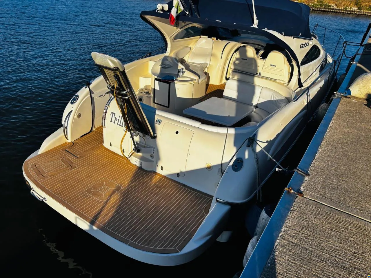 La propulsione è affidata a motori entrofuoribordo Volvo Penta D6, una configurazione potente ed efficiente composta da 2 x 330 CV (243 kW) alimentati a diesel, con 1.000 litri di serbatoio carburante. Le 1.500 ore di moto sono coerenti con l’età dell’imbarcazione e indicano un utilizzo regolare e appropriato.