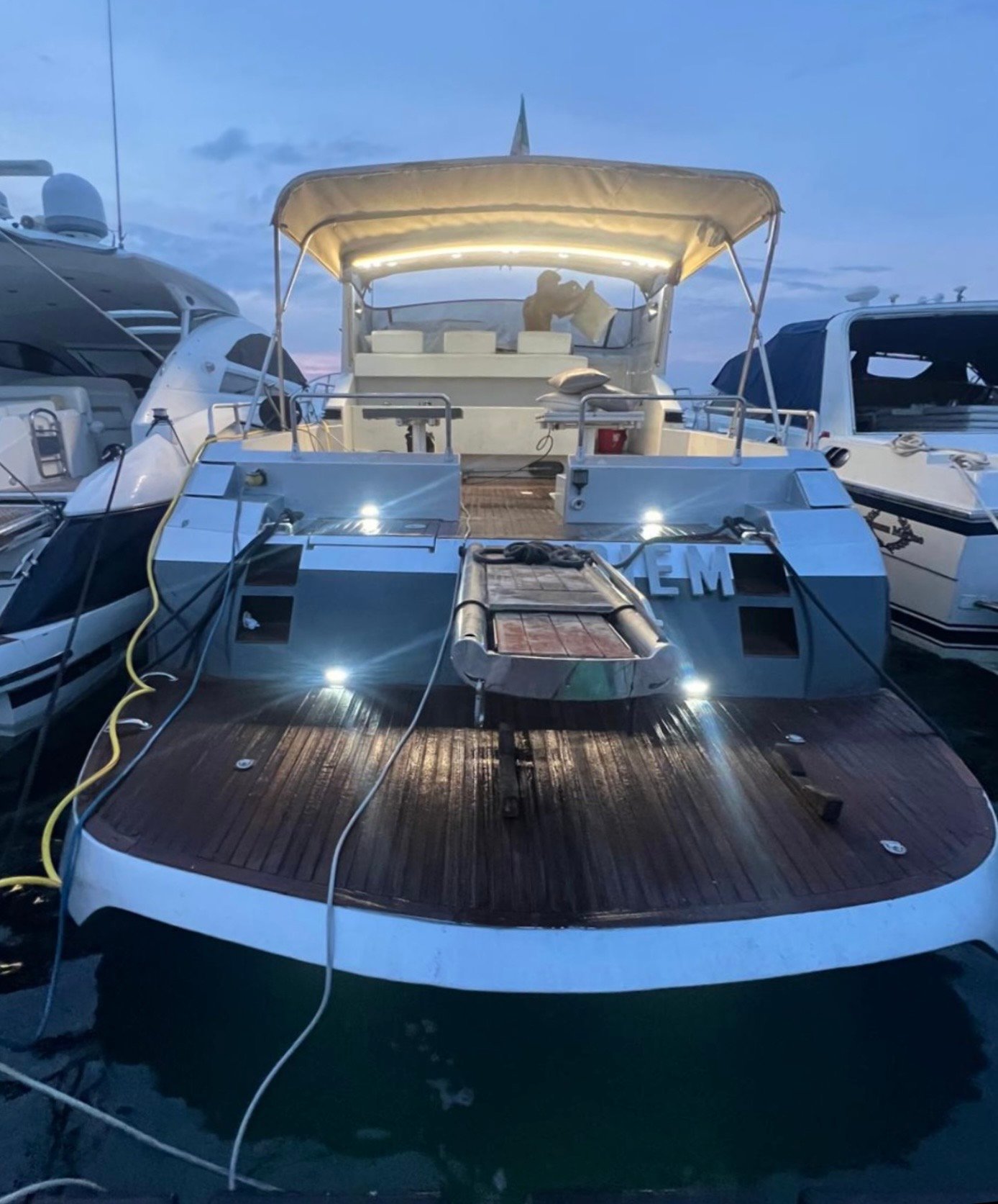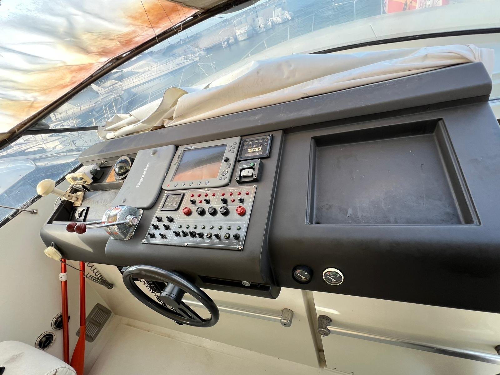 Equipaggiato con due motori Caterpillar da 670 CV, completamente rifatti nel 2025, raggiunge una velocità massima di 30 nodi e una velocità di crociera stabile e fluida di 21 nodi a 1800 giri, garantendo un’esperienza di navigazione dinamica e sicura. La dotazione tecnica è completa: elica di prua, pilota automatico, GPS, plotter, radar, ecoscandaglio ed efficiente elettronica di bordo garantiscono il pieno controllo in ogni situazione.