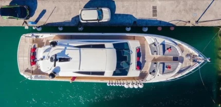 REFIT INTERNI 2019. - SERVIZIO MOTORI OGNI 200 ORE. - YACHTCONTROLLER PER ELICHE E MOTORI. - ELICHE DI PRUA E DI POPPA ELETTRICHE. - POZZETTO IN TEAK. - TEAK PONTE RIFATTO 2018. - ANTIVEGETATIVA ESEGUITA OGNI ANNO.* * OTTIME CONDIZIONI! * * Cabina armatoriale a tutto baglio a centro barca su ponte inferiore, con letto queen size,TV 55",2 spaziosi armadi e bagno con doccia,lavandino e wc elettrico; Cabina Vip a prua con TV 24",armadio, bagno con doccia,lavandino e wc elettrico; Cabina ospiti a dritta con letti in piano e 3°letto pullman; Cabina singola a sinistra. Bagno ospiti in comune con accesso dal corridoio, doccia lavandino e wc elettrico.Cabina equipaggio a poppa con entrata dal pozzetto con letto a castello e bagno privato con doccia.Salone open space su ponte principale con 2 divani a L, tavolo da pranzo, cantinetta vini, Tv 32". Cucina completa di elettrodomestici Siemens, con piano cottura a 4 fuochi, Nr 3 frigoriferi, freezer, forno e microonde. Autoclave, Boiler, Dissalatore Idromar 120lt/h, Serbatoio acque nere 100lt, Acque grigie 300lt, Aria condizionata con 4 unita' reverse cycle, Pompe sentina automatica/elettrica.Tv in tutte le cabine, Impianto stereo con sistema surround, Altoparlanti in salone e su ponte, Lettore cd/dvd, Lavastoviglie, Macchina caffe', Icemaker, Lavatrice.Hard top con tettuccio apribile sopra la timoneria, Area prendisole su ponte di prua con divanetti e tavolini, Pozzetto con sedute, tavolini e wet bar con frigo e lavandino, Doccia pozzetto, Sprayhood, Bimini top, Salpancora elettrico con contacatena, Bitte in acciaio, Piattaforma bagno idraulica in teak (nuovo 2018) con scaletta bagno pieghevole, Passerella idraulica Besenzoni telescopica, Garage per tender idraulico a tutto baglio, Tender Zodiac+fuoribordo Honda 125hp, Luci subacquee a led. Zattera. Pc di bordo, Strumenti del vento, Gps-Plotter con display Raymarine (E120+E80) in timoneria integrato con Radar Raymarine, Sistema wifi, 4xVhf (1 fisso in timoria+1 fisso in pozzetto+2 portatili), Autopilota Raymarine ST6002, Echo Raymarine, Bussola magnetica, Alternatori, Luci di navigazione, Tromba, Faro orientabile.Nr 2 Generatori Kohler da 20Kw (1290 ore), Nr 3 Caricabatterie Mastervolt 100A+Inverter 3.5Kw, Nr 21 Batterie (5xmotori+4xeliche prua e poppa+12xservizi).